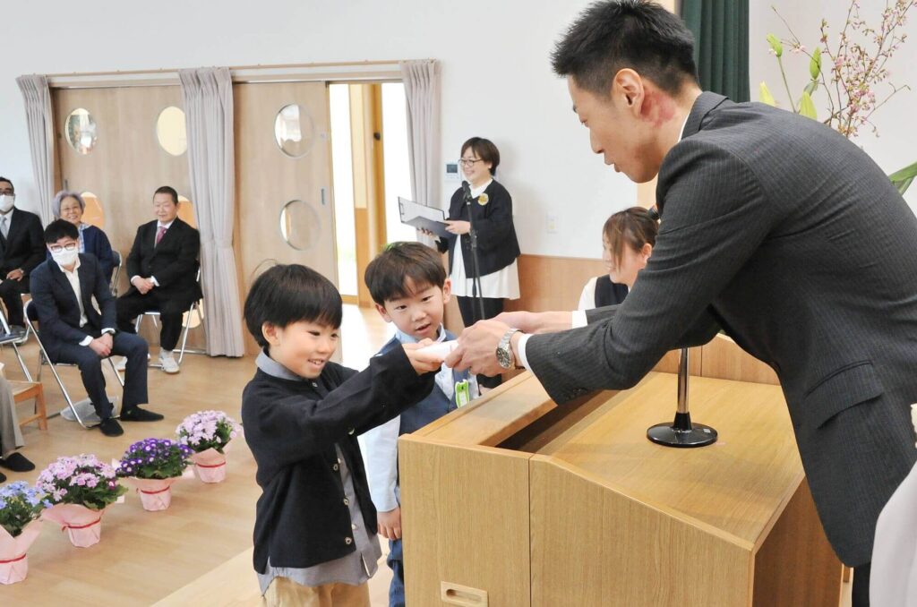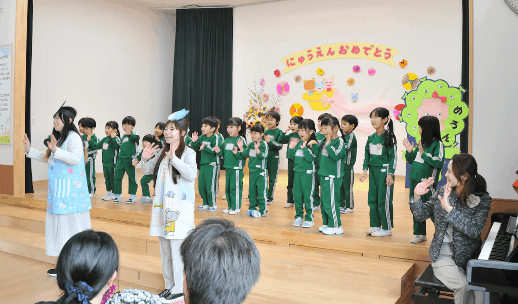式の中では、めろん組のお兄さんお姉さんによる「メロンこども園のうた」の披露や楽し